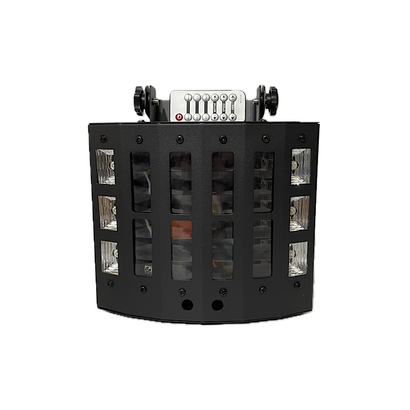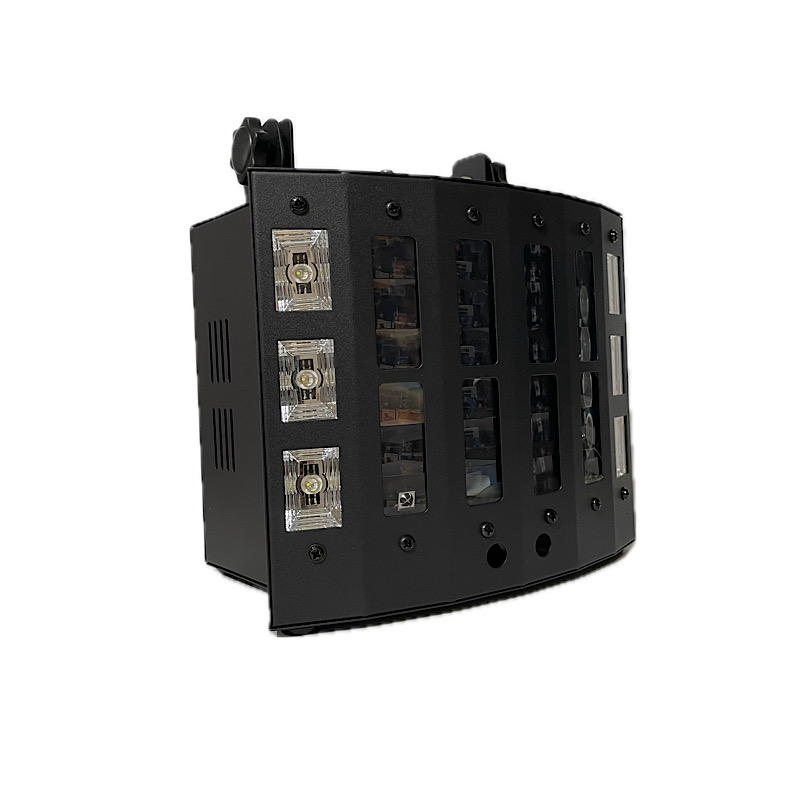 افکت نورپردازی 3 کاره از افکت پروانه ای با 24 لنز (معروف به شصت لنز) ، لیزر کهکشانی RG که از دو لیزر با رنگ های قرمز و سبز با توان 30 میلی وات می باشد، بلک لایت با 6 عدد ال ای دی UV فرابنفش 3 وات تشکیل شده که باعث نوپردازی بسیار زیبا می شود که به مهمانی های شما را بسیار خاص می کند.